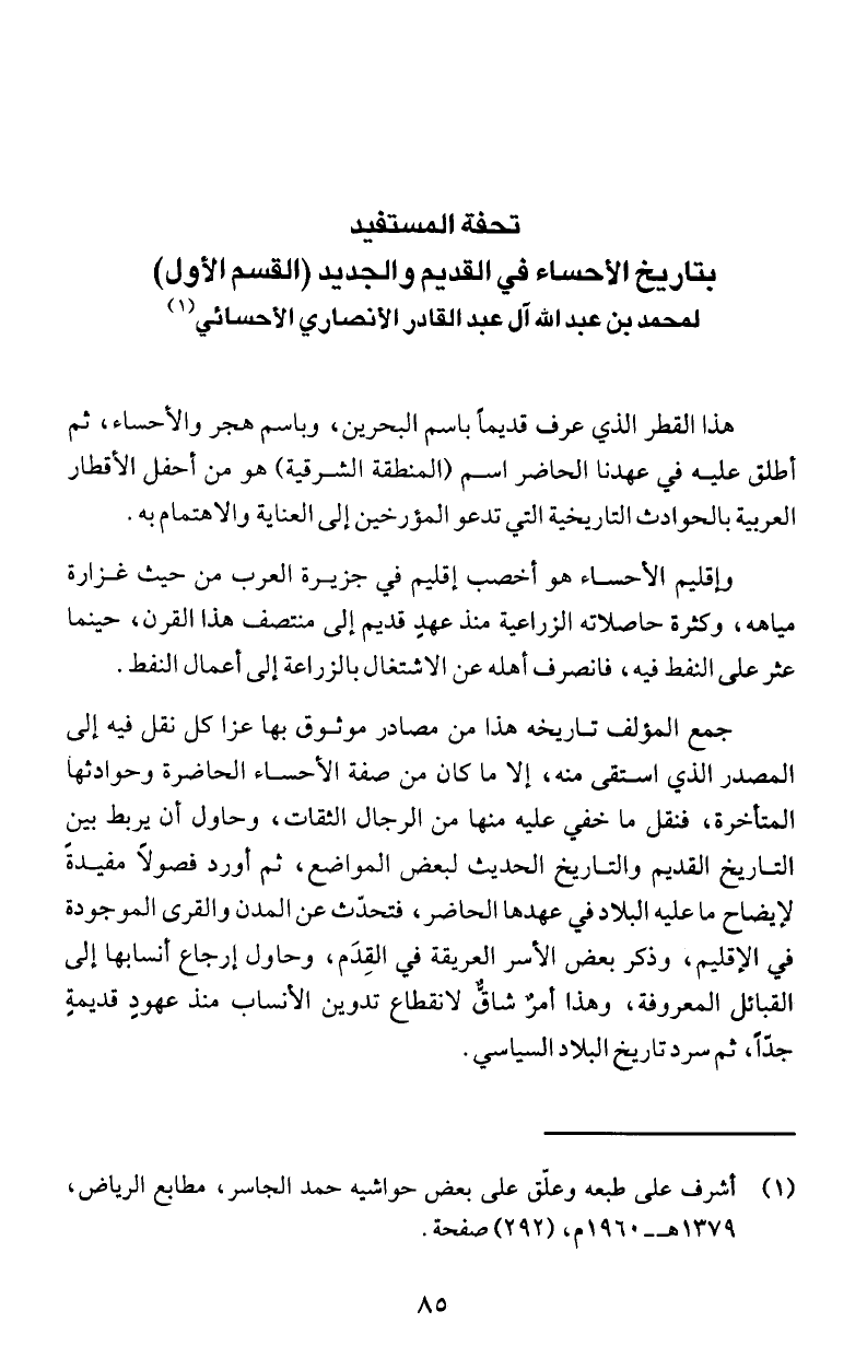 بتاريخ الأحساء في القديم والجديد (القسم الأول)