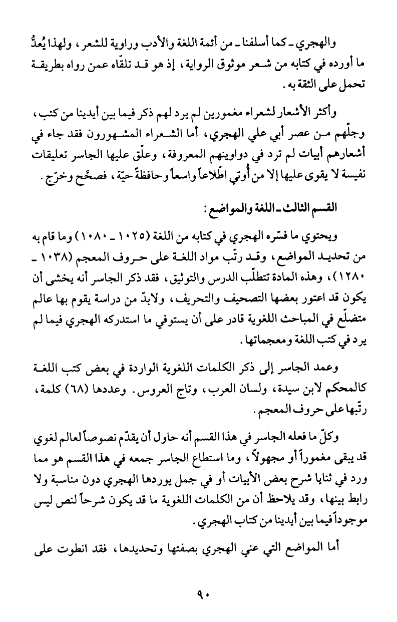 وكل ما فعله الجاسر في هذا القسم أنه حاول أن يقدم نصوصاً لعالم لغوي