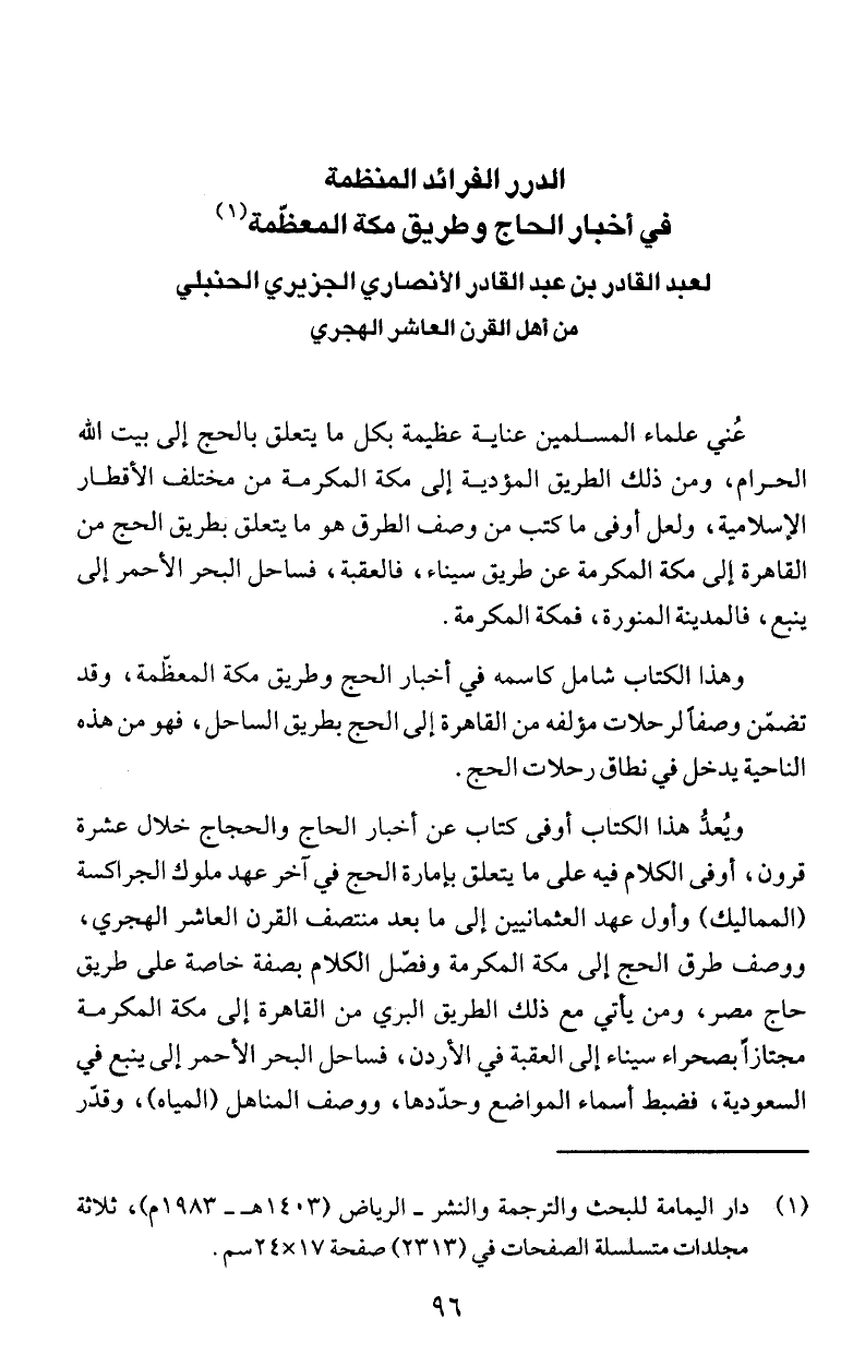 في أخبار الحاج وطريق مكة المعطمة (1)