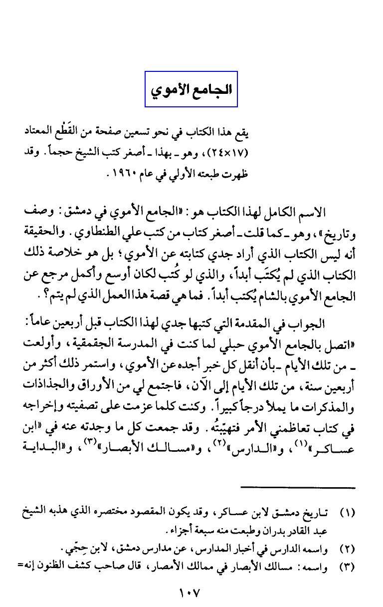 الاسم الكامل لهذا الكتاب هو: "الجامع الأموي في دمشق: وصف