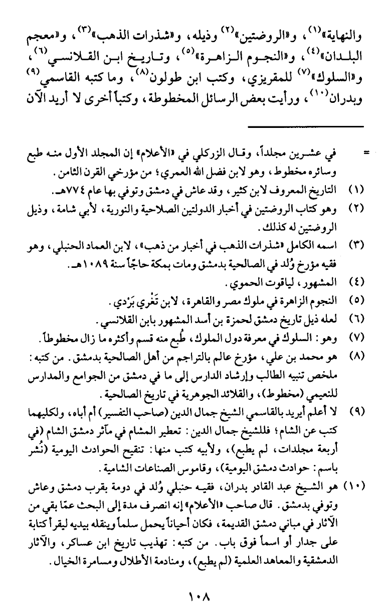 والنهاية " (1)، و"الروضتين " (2) وذيله، و"شذرات الذهب " (3)، و"معجم