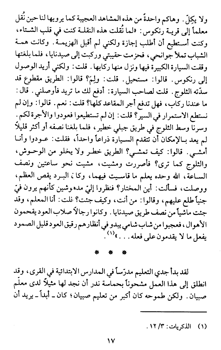 معلماَ إلى قرية رنكوس: "لما نُقلت هذه النقلة كنت في قلب الشتاء،