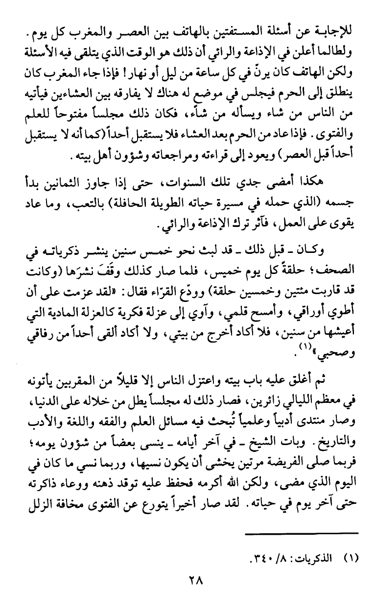 حتى اَخر يوم في حياته. لقد صار أخيراً يتورع عن الفتوى مخافة الزلل