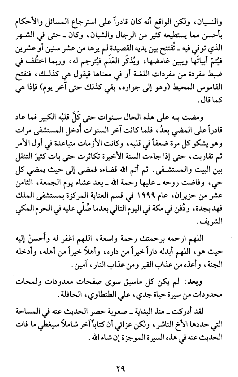 والنسيان، ولكن الواقع أنه كان قادراً على استرجاع المسالْل والأحكام