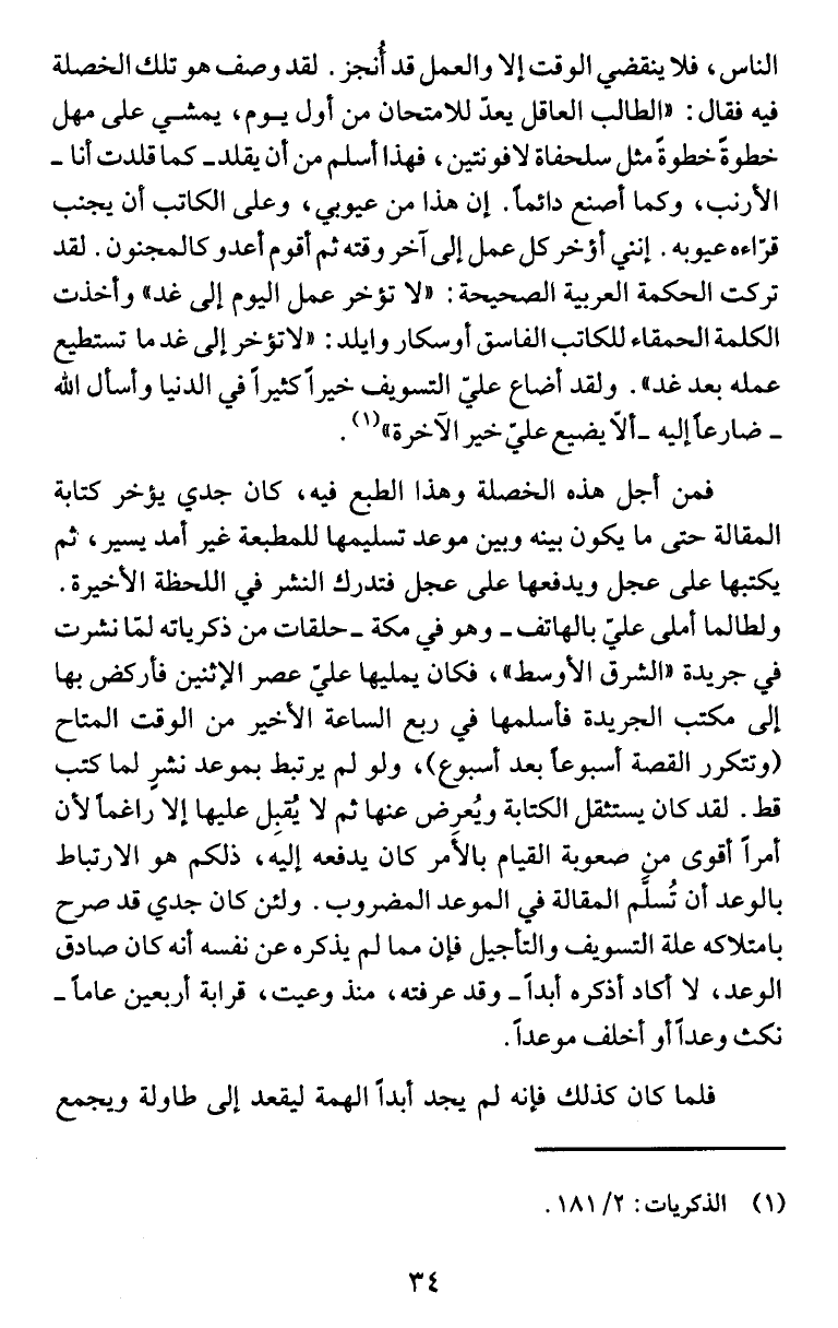 بالوعد أن تُسفَم المقالة في الموعد المضروب. ولئن كان جدي قد صرح
