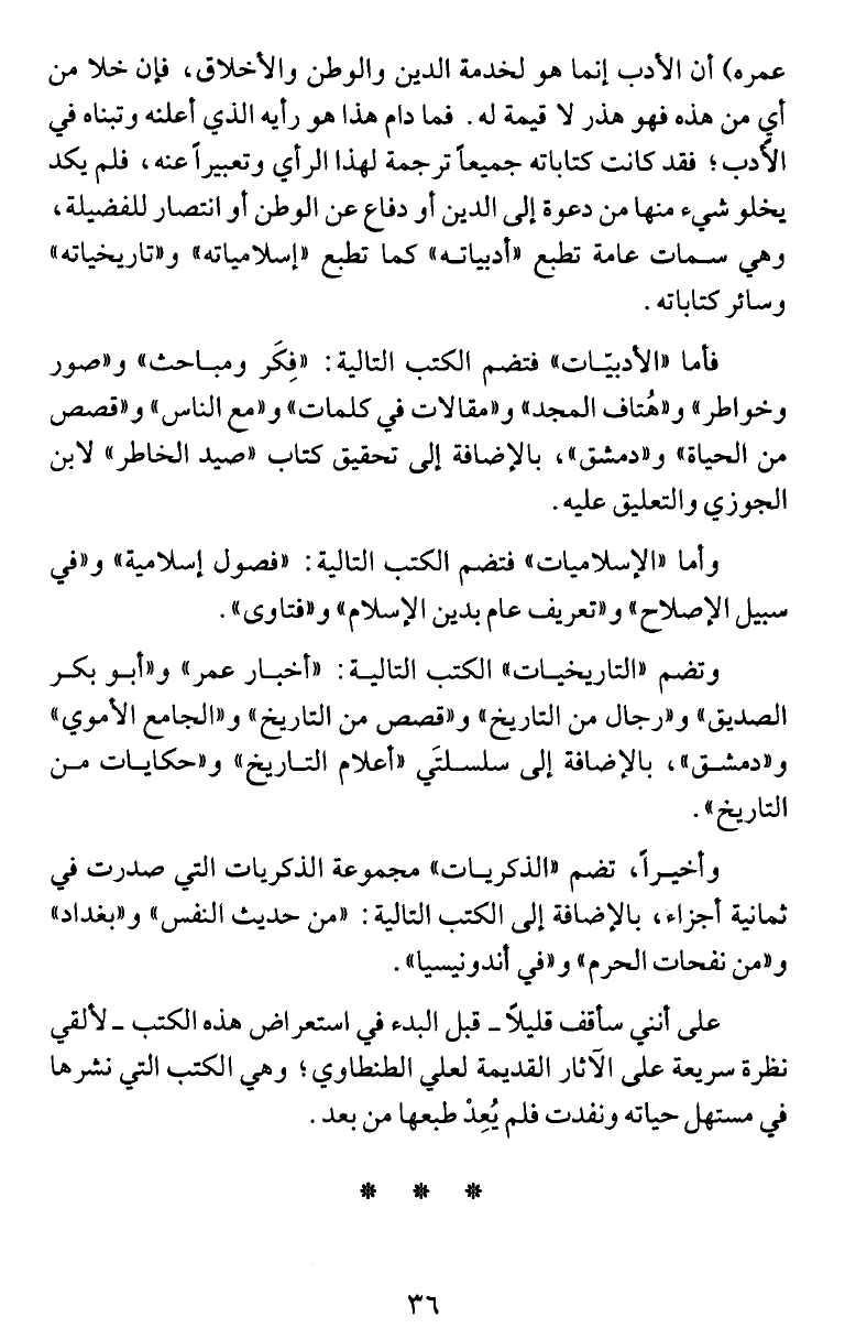 عمره) ان الأدب إنما هو لخدمة الدين والوطن والأخلاق، فإن خلا من