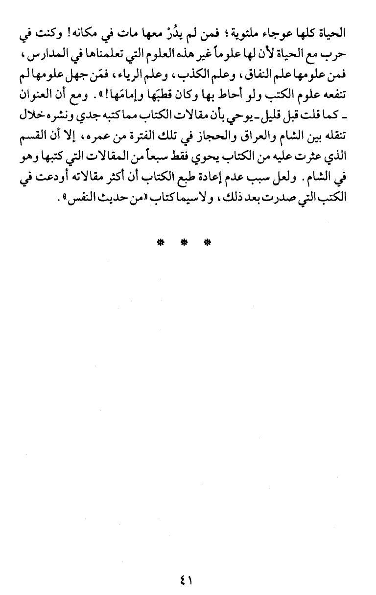 الكتب التي صدرت بعد ذلك، ولاسيما كتاب "من حديث ا لنفس ".