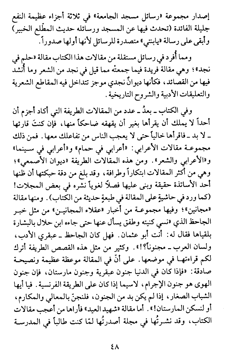 وفي الكتاب - بعدُ - عدد من المقالات الطريفة التي اكاد اجزم أ ن