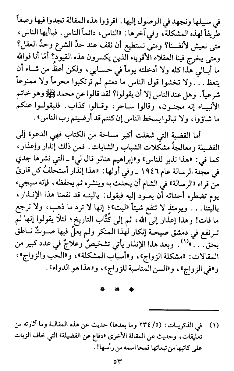 طريفاً لهذه المشكلة، وفي اَخرها: "الناس، دائماًالناس. فيا أيها الناس،