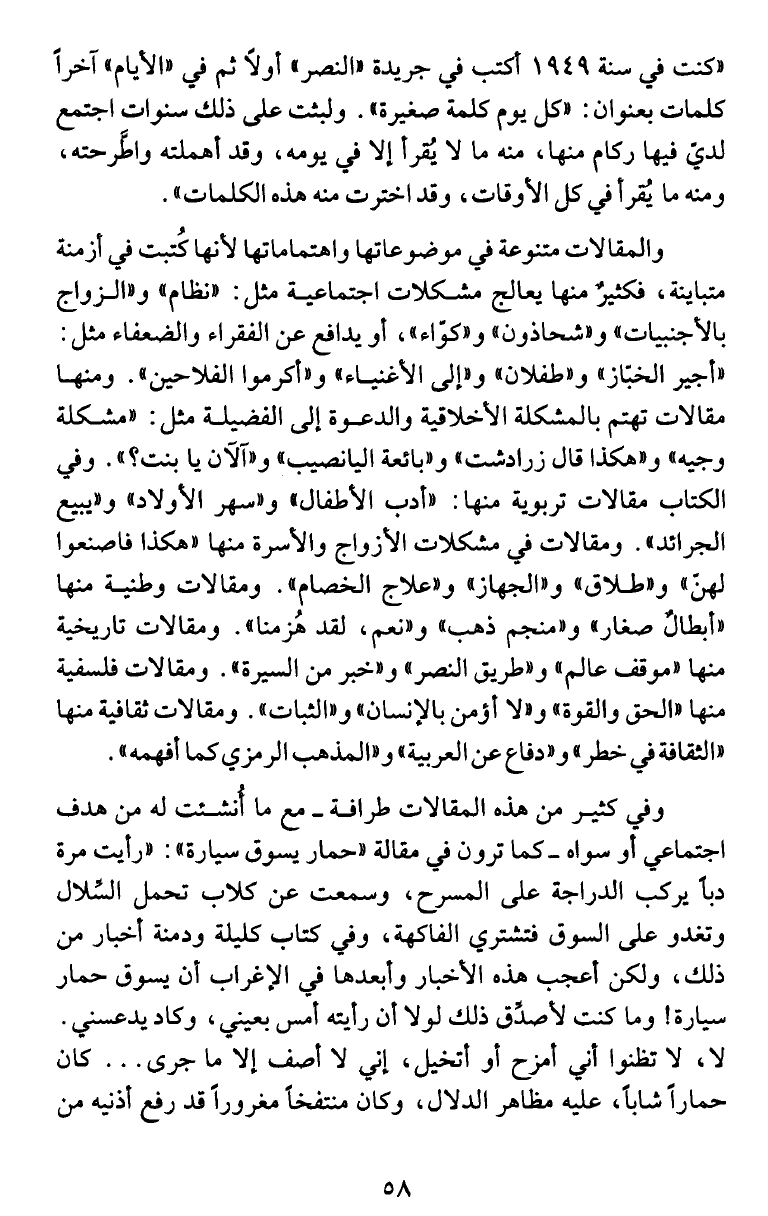 لهن" و"طلاق" و"الجهاز" و"علاج الخصام ". ومقالات وطنية منها