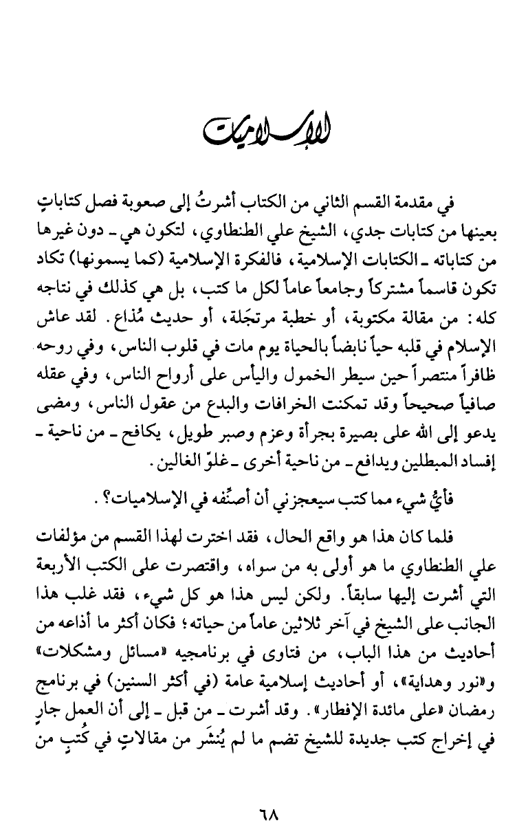 علي الطنطاوي ما هو أولى به من سواه، واقتصرت على الكتب الأربعة