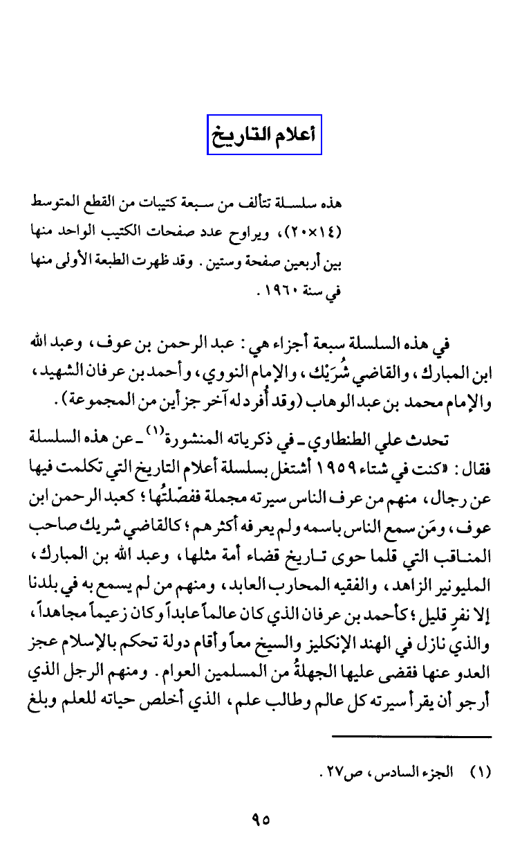 تحدث علي الطنطاوي - في ذكرياته المنشورة (1) - عن هذه السلسلة