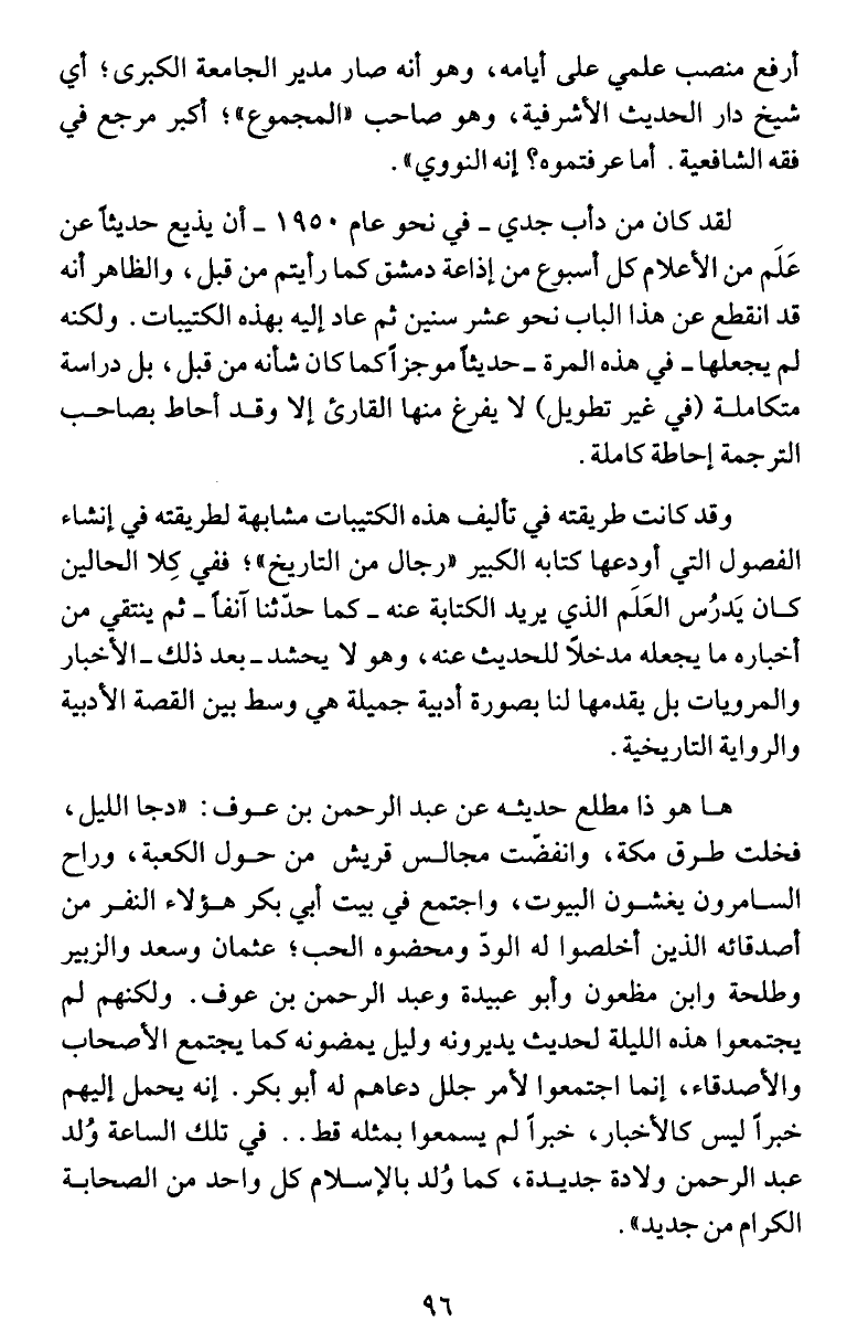 ها هو ذا مطلع حديئه عن عبد الرحمن بن عوف: "دجا الليل،
