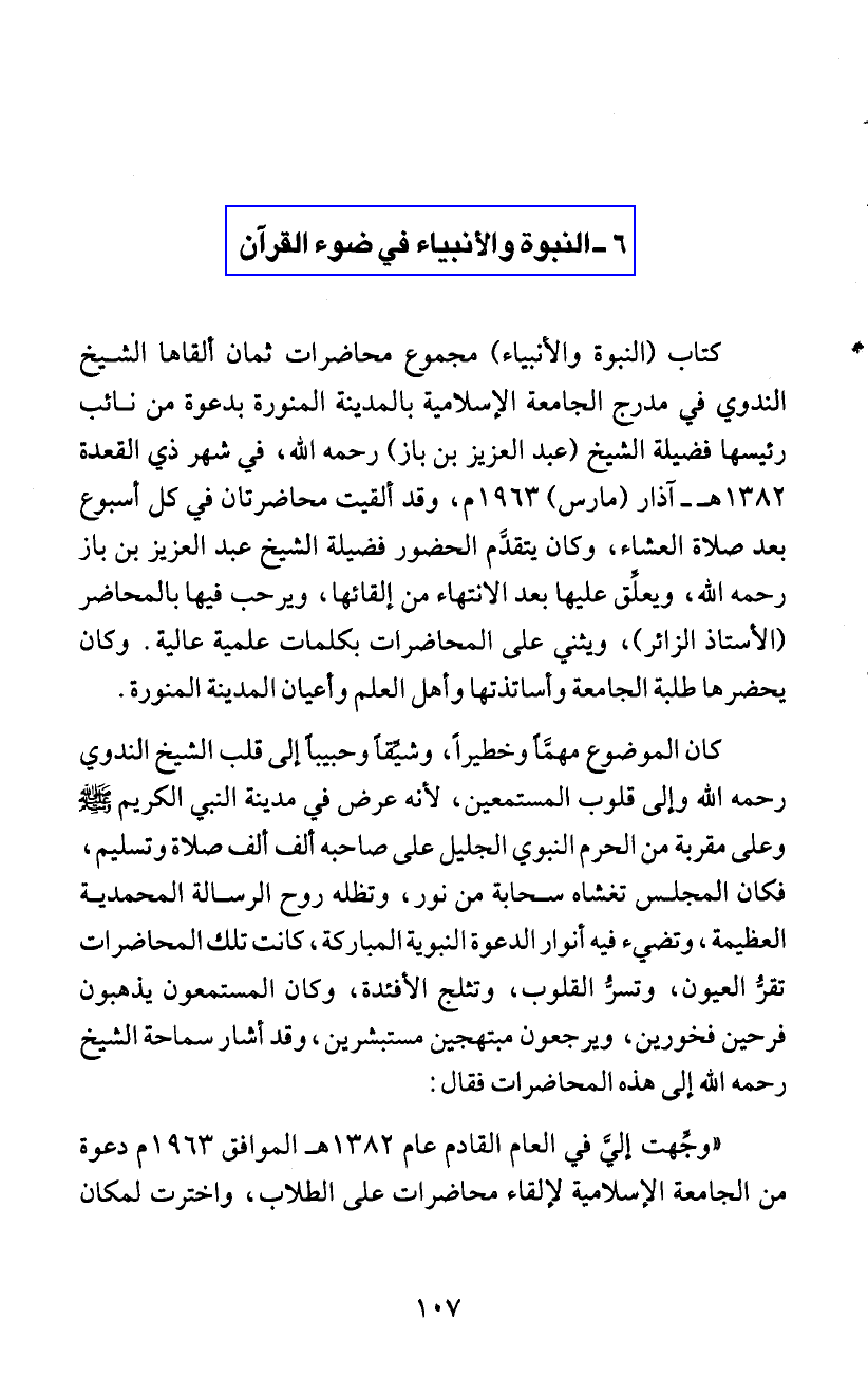 الندوي في مدرج الجامعة الإسلامية بالمدينة المنورة بدعوة من نائب