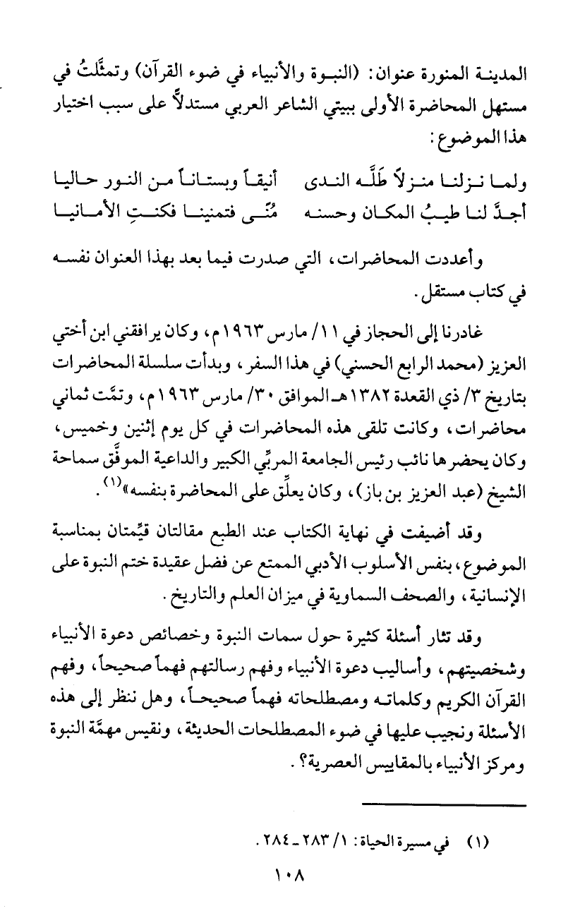 المدينة المنورة عنوان: (النبوة والأنبياء في ضوء القراَن) وتمثلتُ في