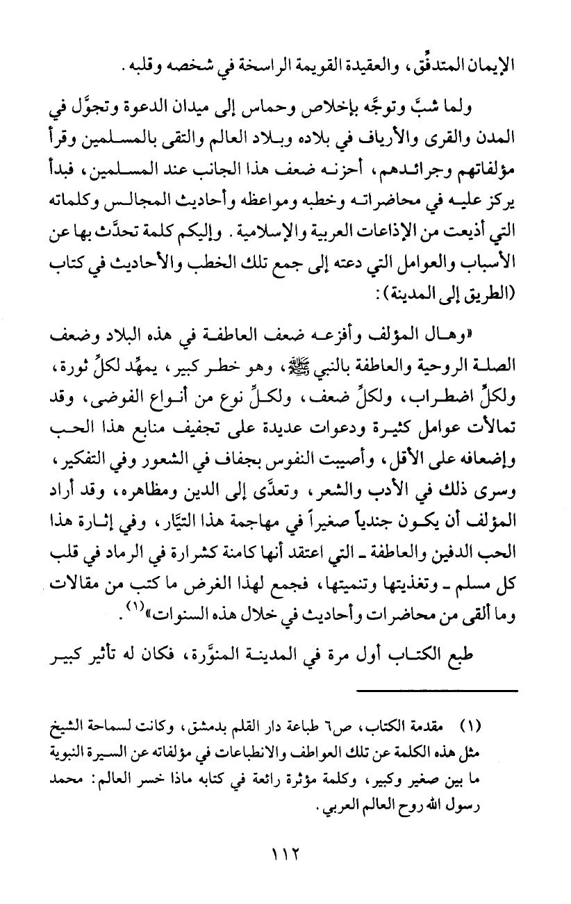 مثل هذه الكلمة عن تلك العواطف والانطباعات في مؤلفاته عن السيرة النبوية