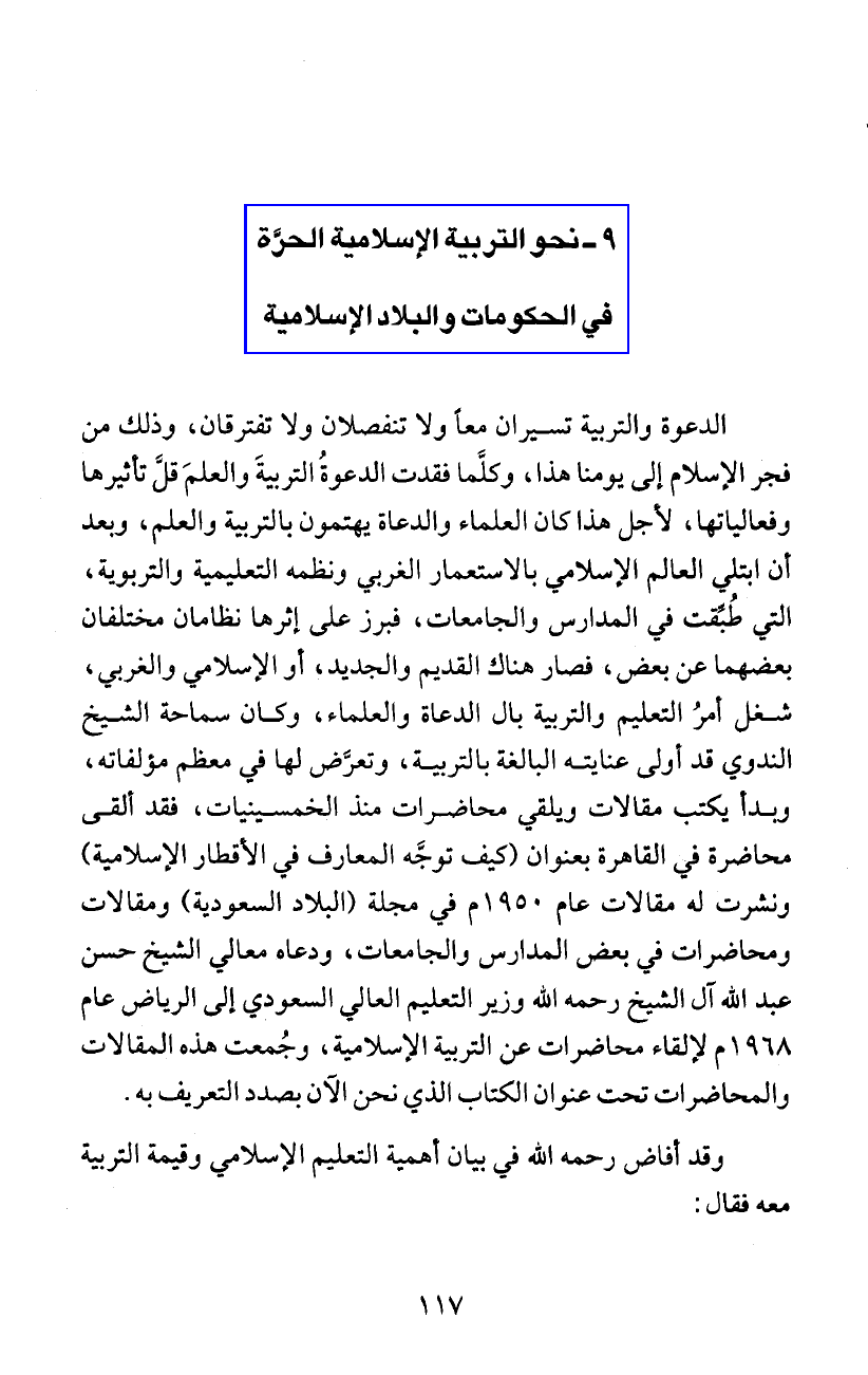 وقد أفاض رحمه الله في بيان أهمية التعليم الإسلامي وقيمة التربية