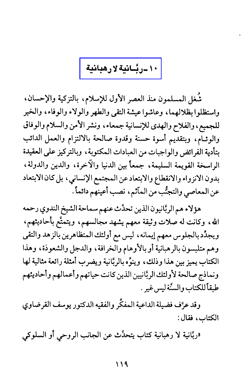 "رئانية لا رهبانية كتاب يتحدَث عن الجانب الروحي أو السلوكي