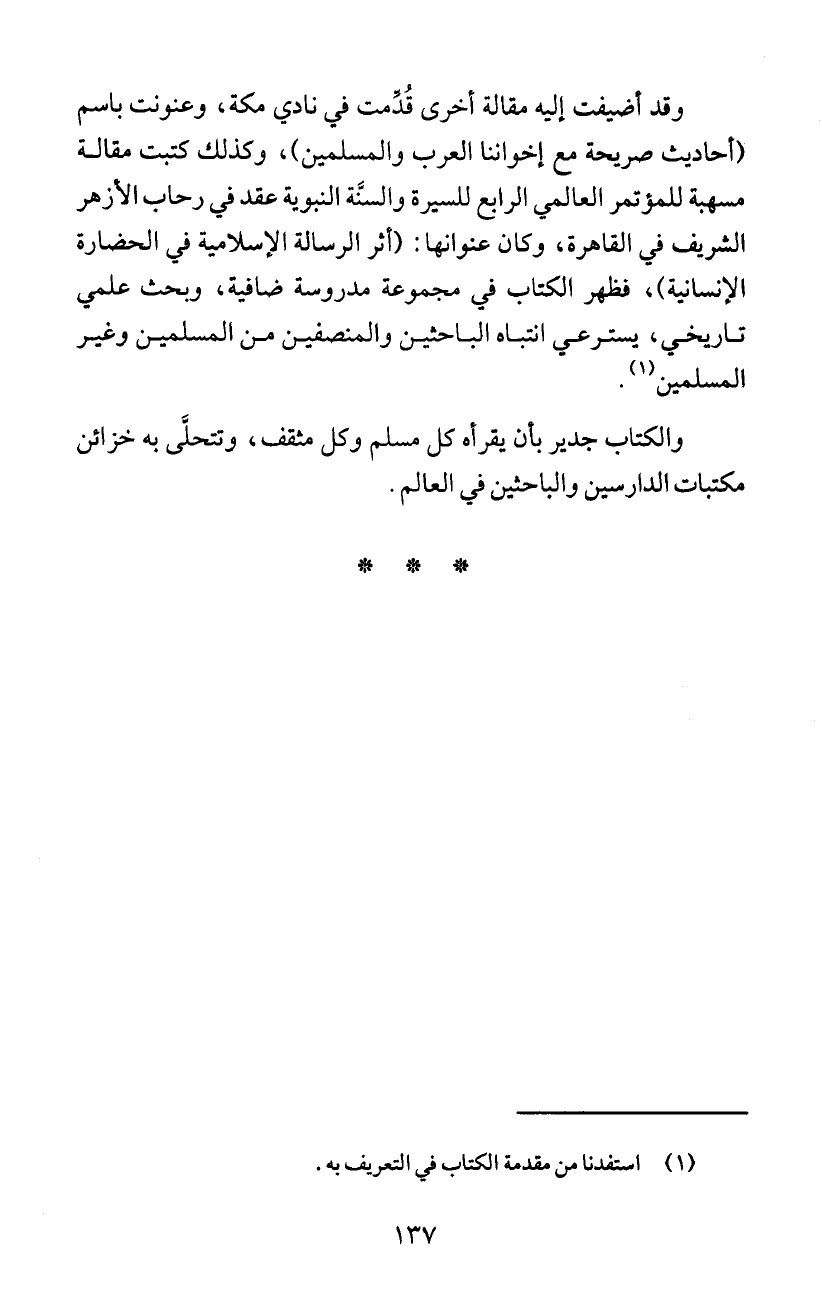 والكتاب جدير بأن يفرأه كل مسلم وكل مثقف، وتتحفَى به خزائن
