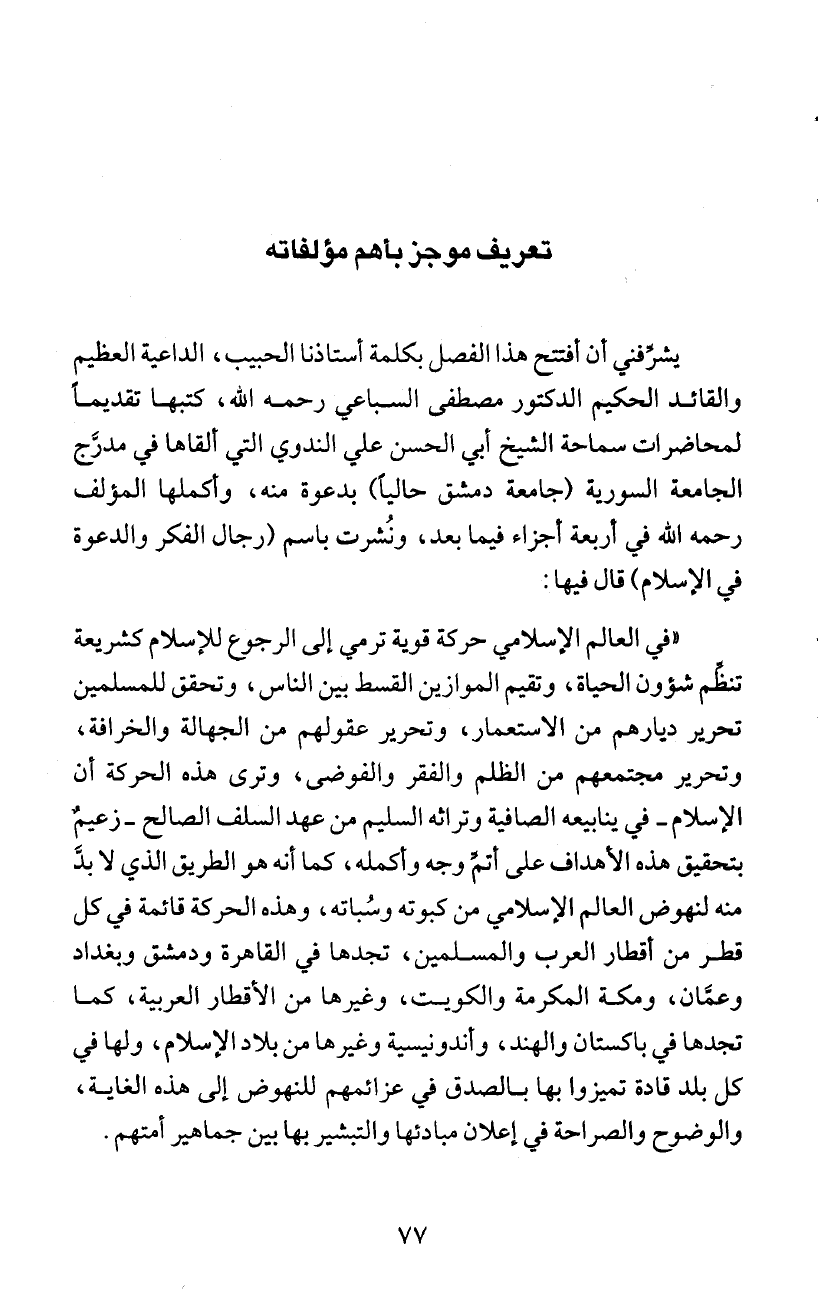 والقائد الحكيم الدكتور مصطفى السباعي رحمه الله، كتبها تقديماَ