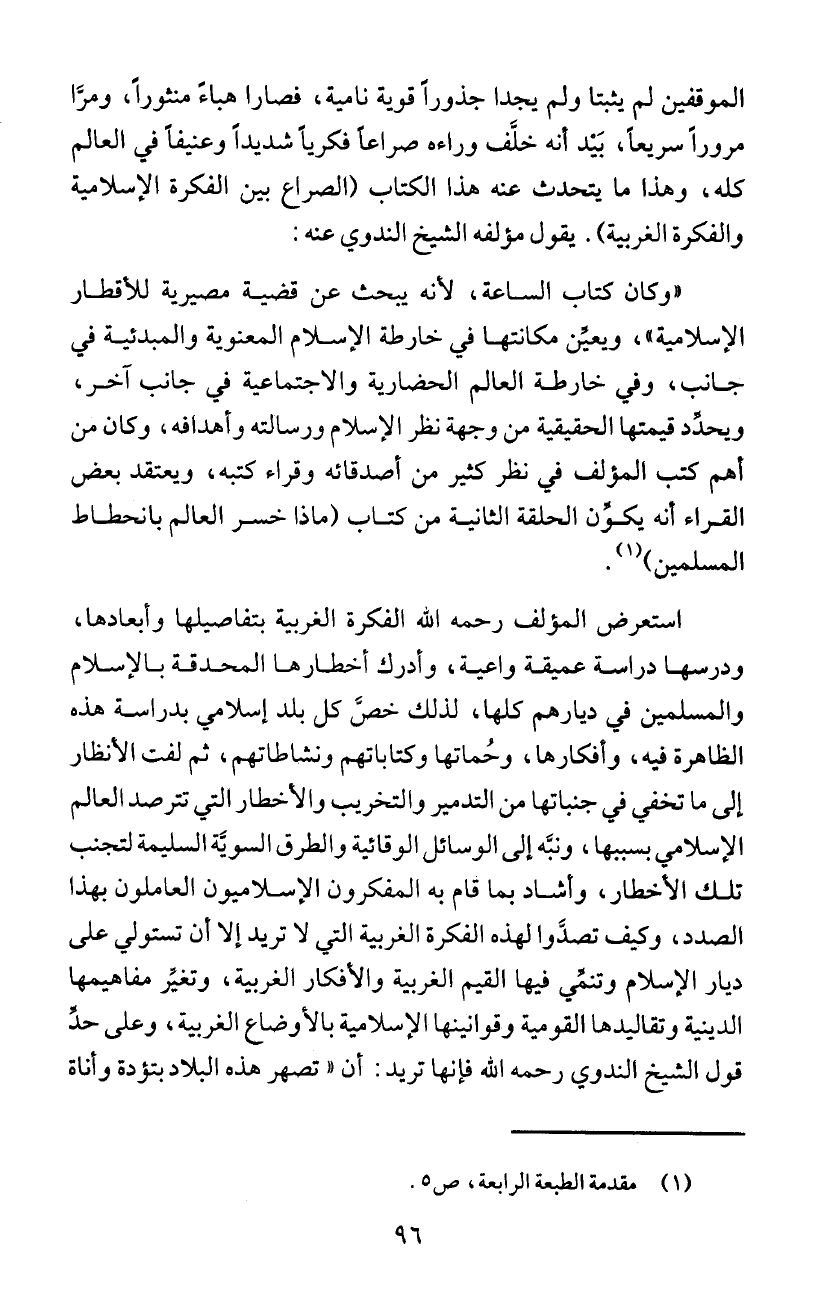 والفكرة الغربية). يفول مؤلفه الشيخ الندوي عنه: