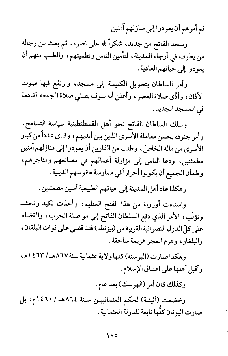 وسجد الفاتح من جديد، شكراً لله على نصره، ثم بعث من رجاله من يطوف في أرجاء المدينة، لتأمين الناس وتطمينهم، والطلب منهم أن يعودوا إلى حياتهم العادية.