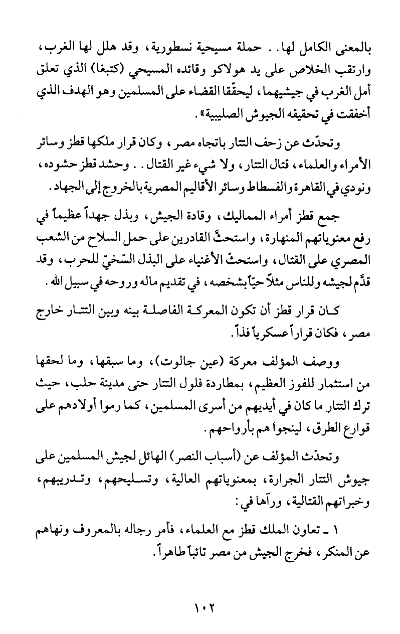 وتحذث عن زحف التتار باتجاه مصر، وكان قرار ملكها قطز وسائر