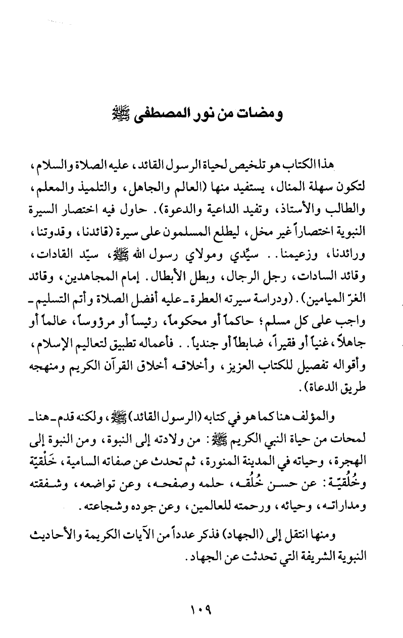 النبوية اختصاراَ غير مخل، ليطلع المسلمون على سيرة (قائدنا، وقدوتنا،