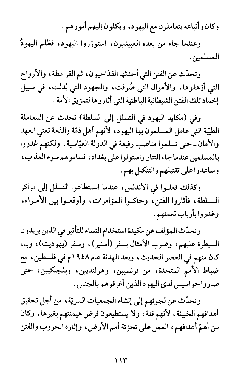 وفي (مكايد اليهود في التسلل إلى السلطة) تحدث عن المعاملة