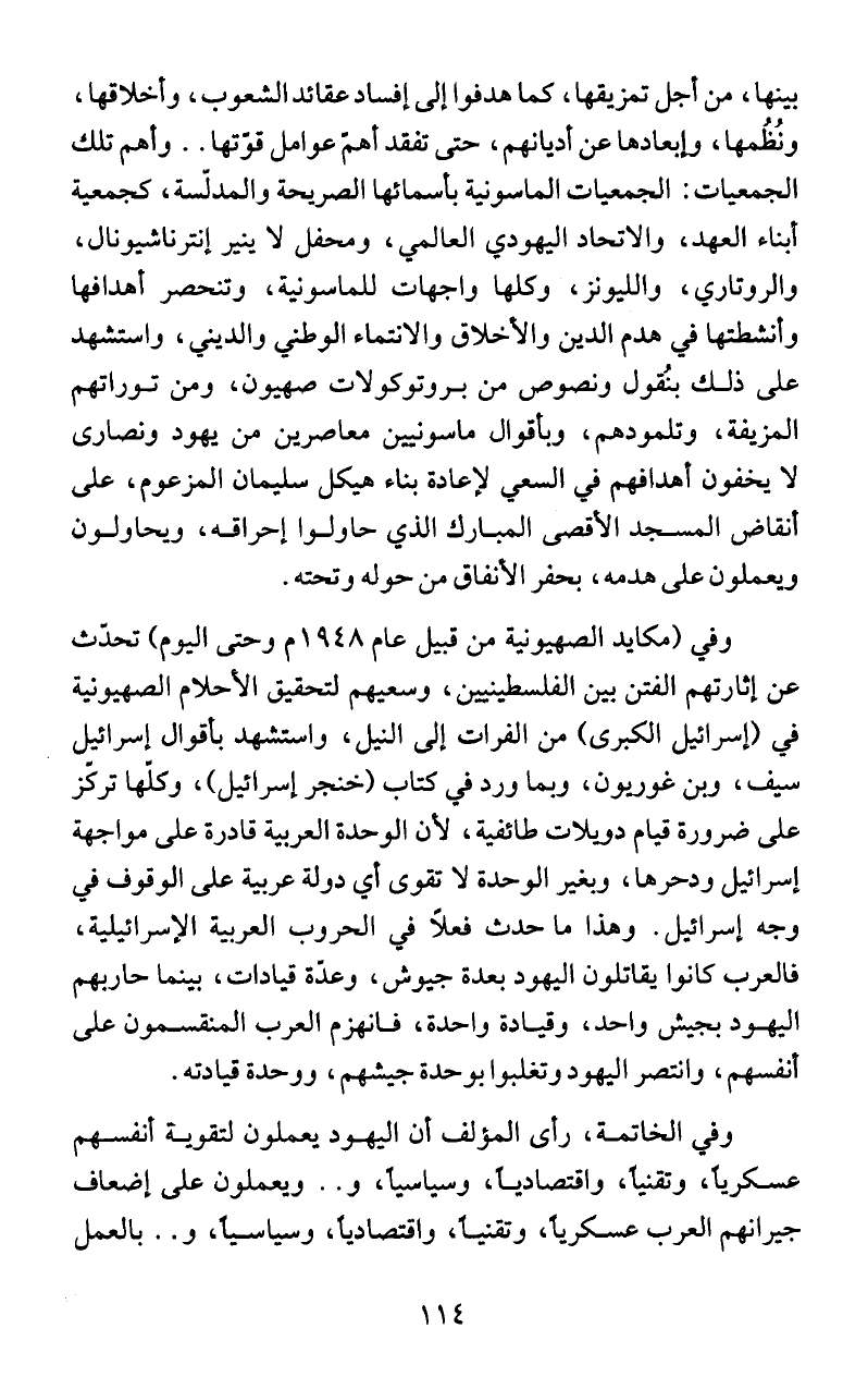 وفي الخاتمة، راى المؤلف ان اليهود يعملون لتقوية انفسهم