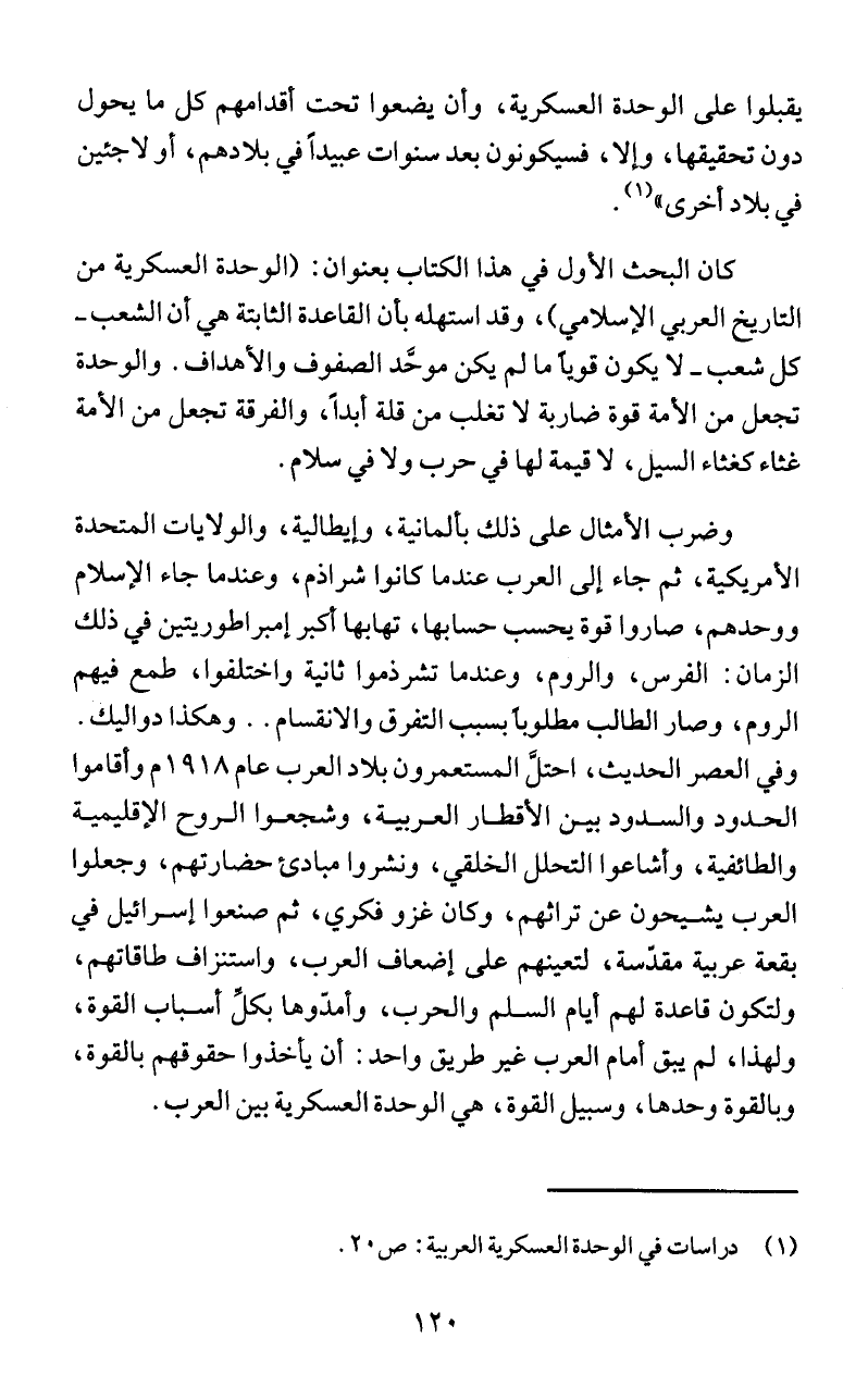 كان البحث الأول فى هذا الكتاب بعنوان: (الوحدة العسكرية من