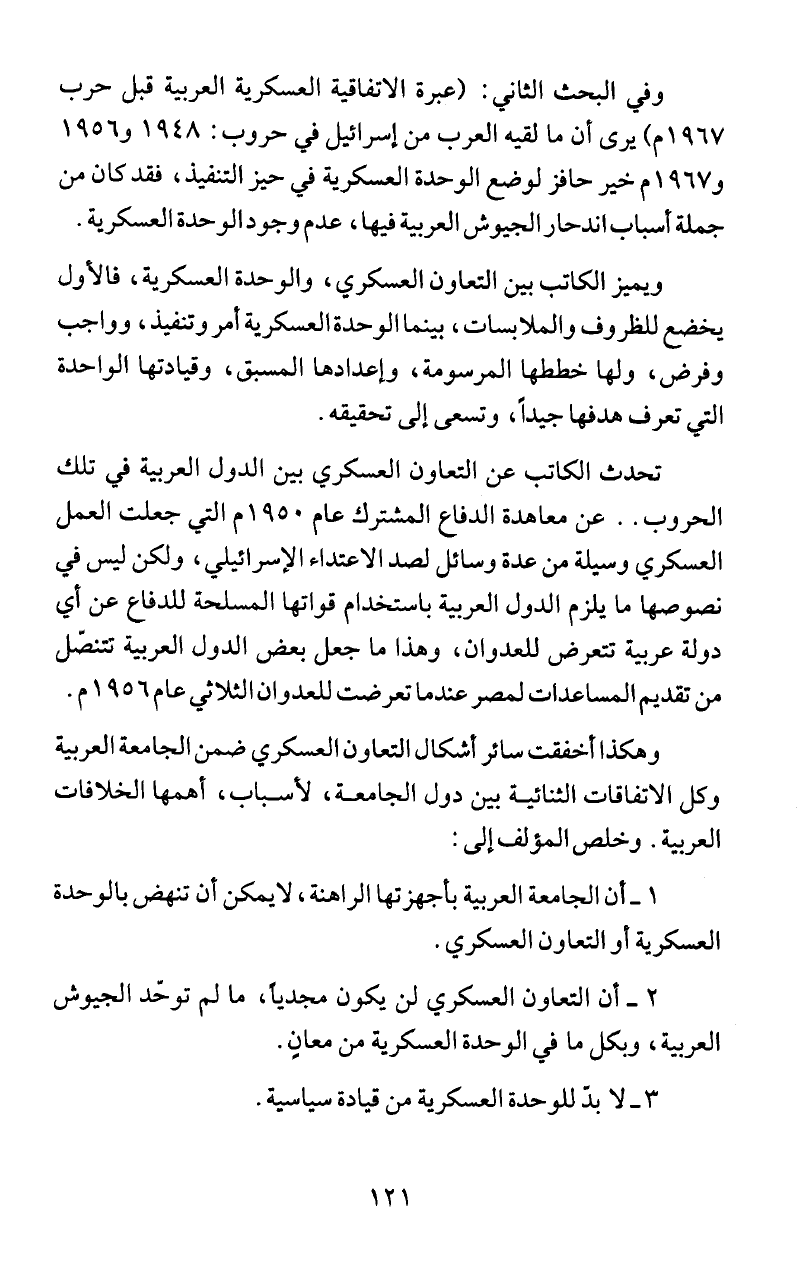 وفي البحث الثاني: (عبرة الاتفاقية العسكرية العربية قبل حرب