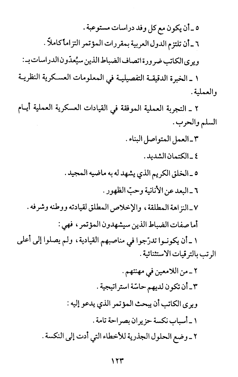 6 - أن تلتزم الدول العربية بمقررات المؤتمر التزامأكاملاً.