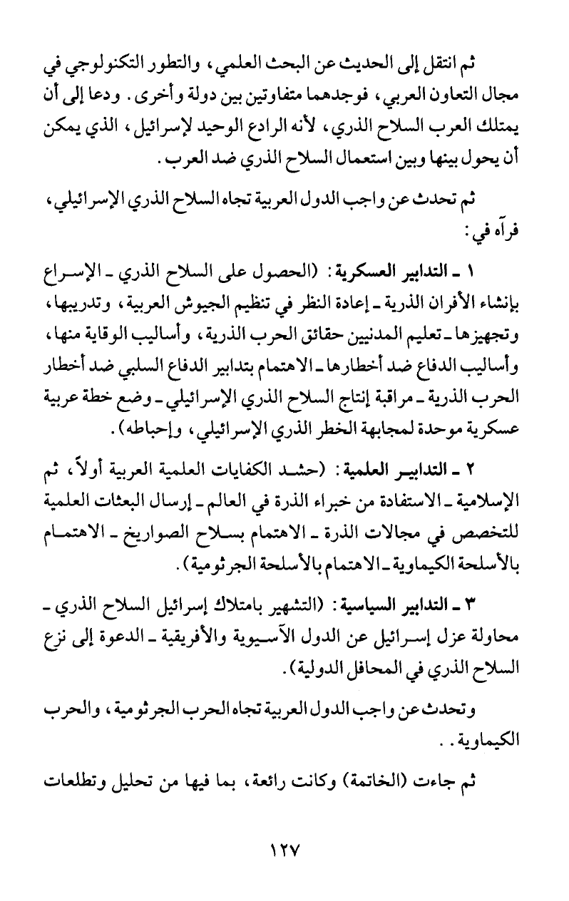 ثم تحدث عن واجب الدول العربية تجاه السلاح الذري ا لإسرائيلي،