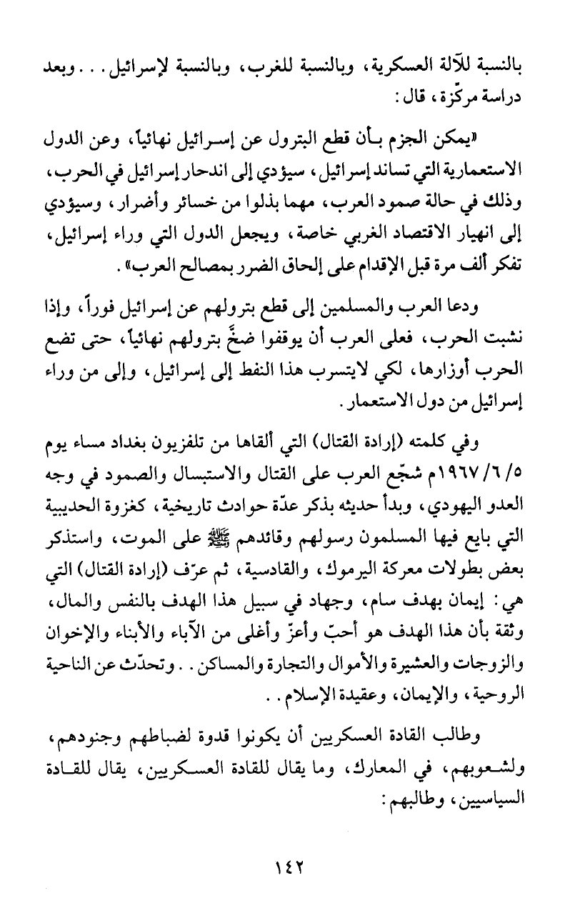 ودعا العرب والمسلمين إلى قطع بترولهم عن إسرائيل فوراَ، وإذا