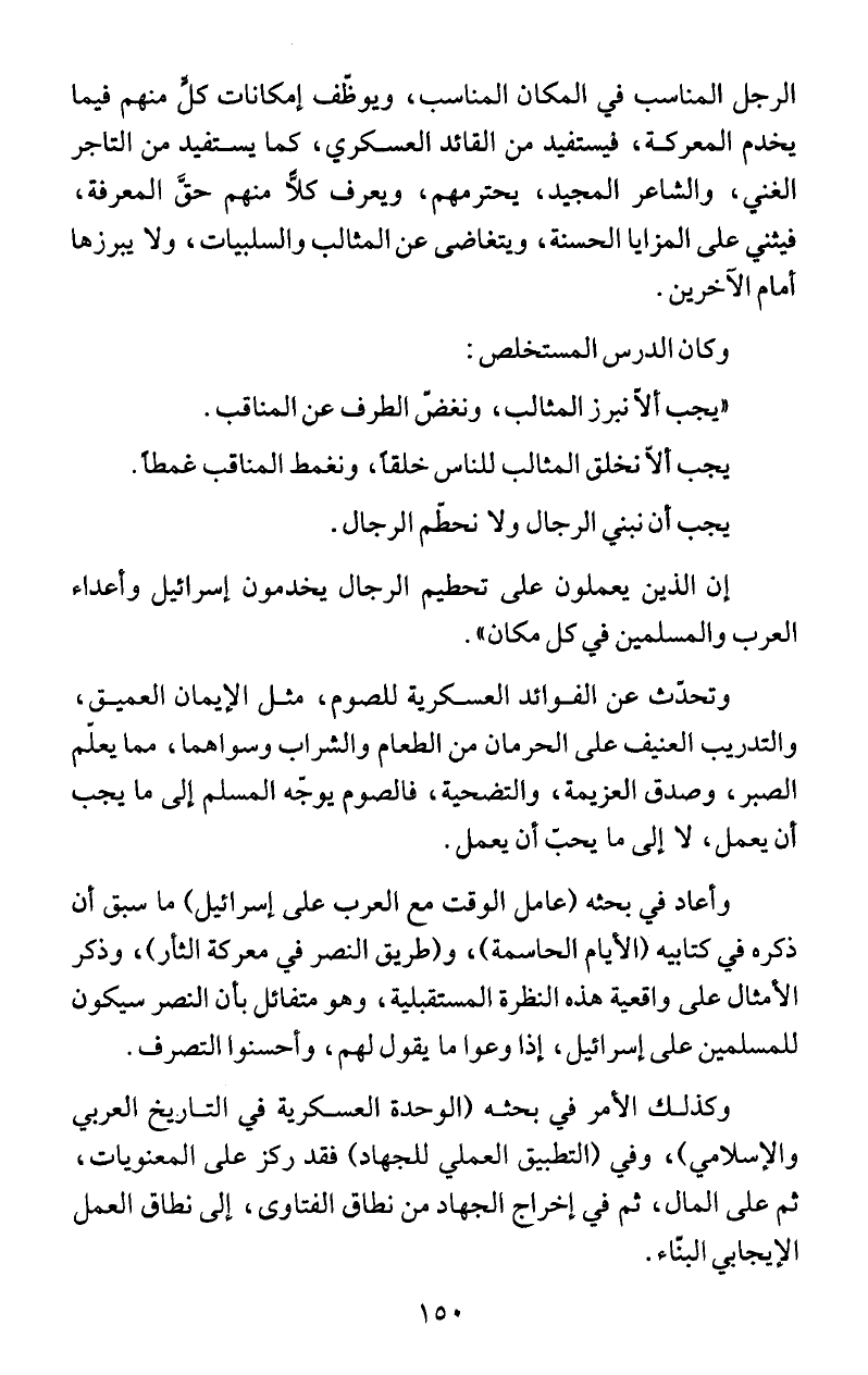 والإسلامي)، وفي (التطبيق العملي للجهاد) فقد ركز على المعنويات،