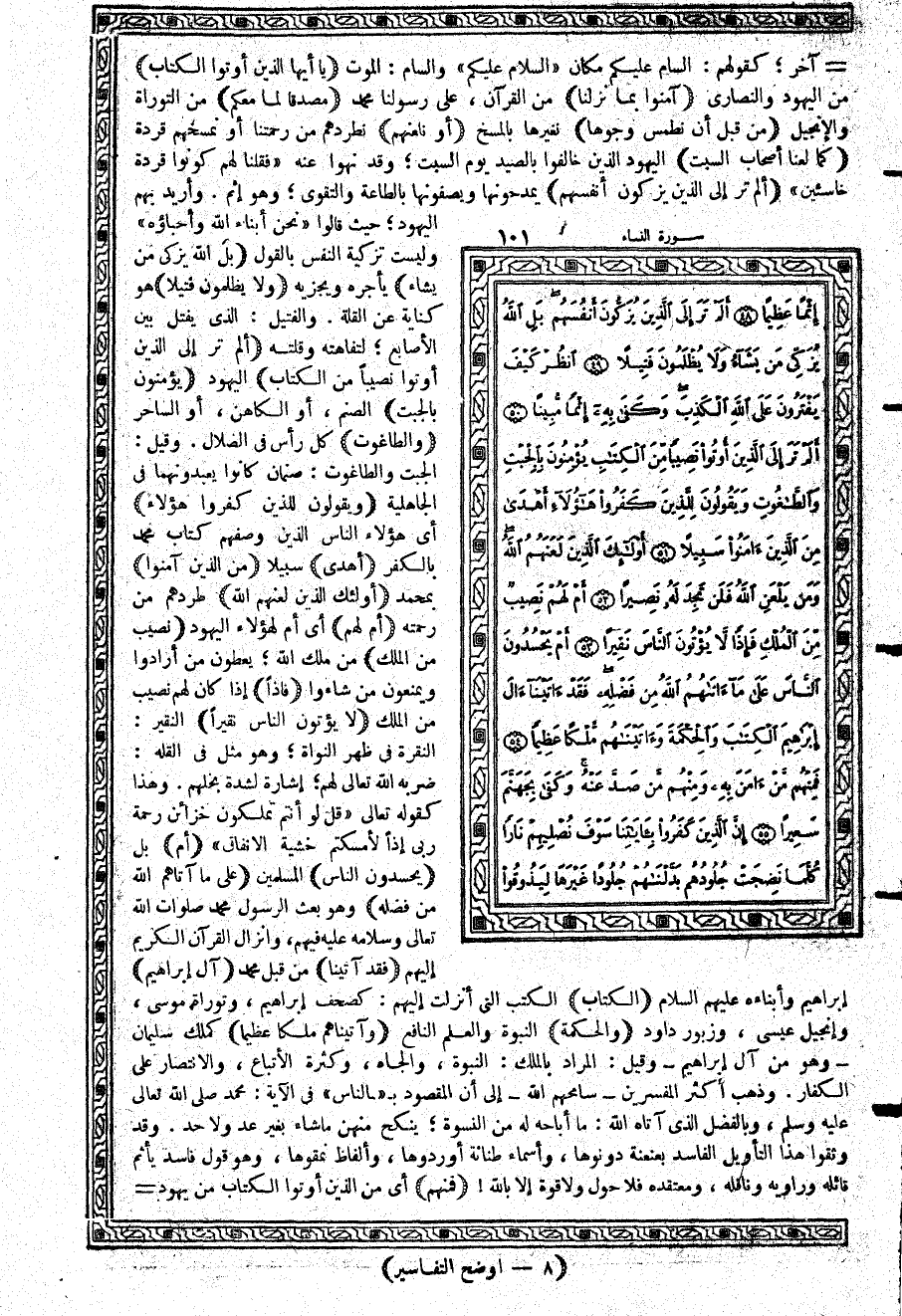 -[102]- بني إسرائيل {مَّنْ آمَنَ بِهِ} أي بمحمد عليه الصَّلاة والسَّلام. أو {مَّنْ آمَنَ بِهِ} أي بالكتاب - أي كتاب منزل - وليس فيه. ما يؤمنون به من الجبت والطاغوت بل فيه نعت محمد عليه الصَّلاة والسَّلام، وأنباء بعثته {وَمِنْهُمْ مَّن صَدَّ عَنْهُ} أي أعرض ومنع الناس عن الإيمان به