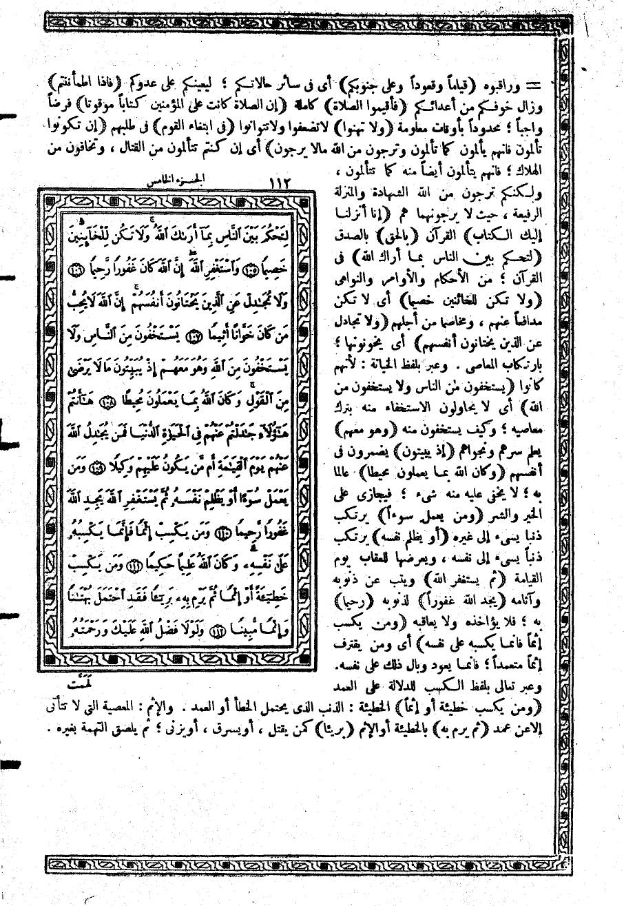 {وَمَن يَكْسِبْ خَطِيئَةً أَوْ إِثْماً} الخطيئة: الذنب الذي يحتمل الخطأ أو العمد. والإثم: المعصية التي لا تتأتى إلا عن عمد {ثُمَّ يَرْمِ بِهِ} بالخطيئة أو الإثم {بَرِيئاً} كمن يقتل، أو يسرق، أو يزني؛ ثم يلصق التهمة بغيره.