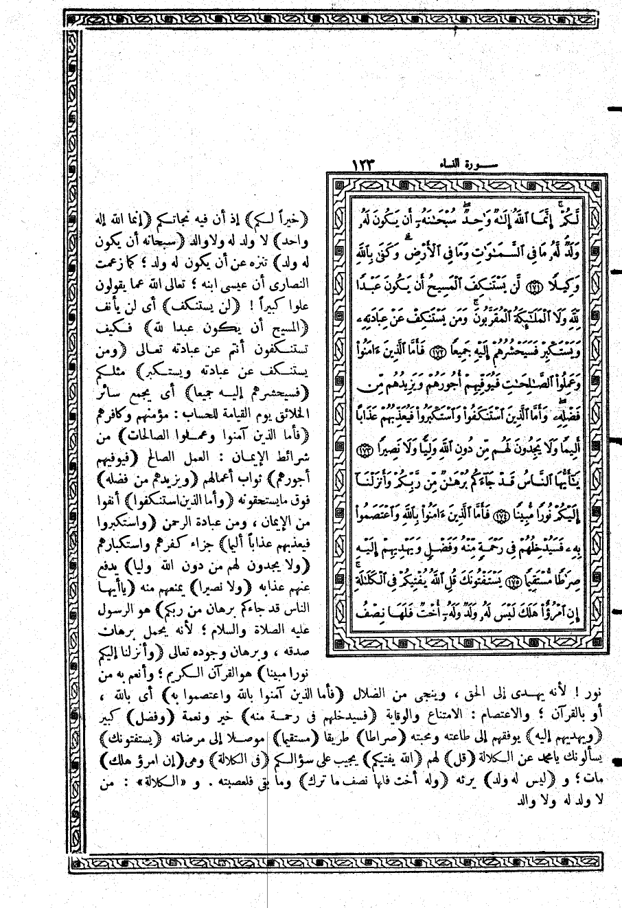 {يَسْتَفْتُونَكَ} يسألونك يا محمد عن الكلالة {قُلِ} لهم {اللَّهُ يُفْتِيكُمْ} يجيب على سؤالكم {فِي الْكَلاَلَةِ} وهي {إِن امْرُؤٌ هَلَكَ} مات؛ و {لَيْسَ لَهُ وَلَدٌ} يرثه {وَلَهُ أُخْتٌ فَلَهَا نِصْفُ مَا تَرَكَ} وما بقي فلعصبته. و «الكلالة»: من لا ولد له ولا والد.
