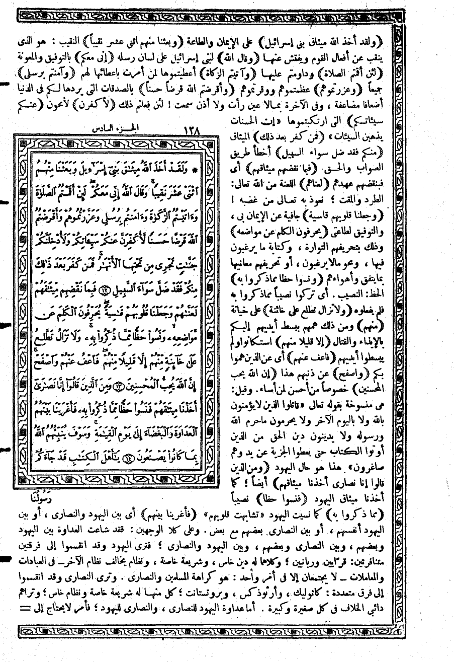 {وَلَقَدْ أَخَذَ اللَّهُ مِيثَاقَ بَنِي إِسْرَآئِيلَ} على الإيمان والطاعة {وَبَعَثْنَا مِنهُمُ اثْنَيْ عَشَرَ نَقِيباً} النقيب: هو الذي ينقب عن أفعال القوم ويفتش عنها {وَقَالَ اللَّهُ} لبني إسرائيل على لسان رسله {إِنِّي مَعَكُمْ} بالتوفيق والمعونة {لَئِنْ أَقَمْتُمُ الصَّلاَةَ} وداومتم عليها {وَآتَيْتُمْ الزَّكَاةَ} أعطيتموها لمن أمرت باعطائها لهم {وَآمَنتُمْ بِرُسُلِي} جميعاً {وَعَزَّرْتُمُوهُمْ} عظمتموهم ووقرتموهم {وَأَقْرَضْتُمُ اللَّهَ قَرْضاً حَسَناً} بالصدقات التي يردها لكم في الدنيا أضعافاً مضاعفة، وفي الآخرة بما لا عين رأت ولا أذن سمعت لئن فعلتم ذلك {لأُكَفِّرَنَّ} لأمحون {عَنْكُمْ سَيِّئَاتِكُمْ} التي ارتكبتموها {إِنَّ الْحَسَنَاتِ يُذْهِبْنَ السَّيِّئَاتِ}
