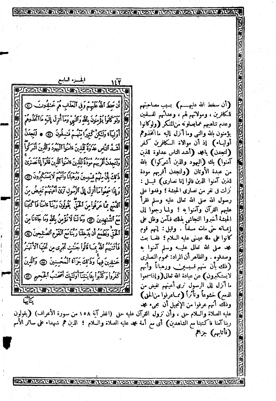 قيل: نزلت في نفر من نصارى الحبشة؛ وفدوا على رسولالله فقرأ عليهم القرآن وآمنوا به؛ ولما رجعوا إلى الحبشة أخبروا النجاشي بذلك فآمن وظل على إيمانه حتى مات مسلماً. وقيل: إنهم قوم كانوا على ملة عيسى عليه السلام؛ فلما بعث محمد آمنوا به وصدقوه. والظاهر أن المراد: عموم النصارى {ذلِكَ بِأَنَّ مِنْهُمْ قِسِّيسِينَ وَرُهْبَاناً وَأَنَّهُمْ لاَ يَسْتَكْبِرُونَ} عن عبادة الله تعالى