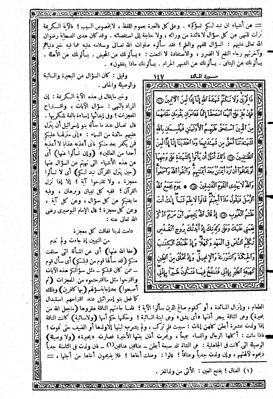 -[148]- ولا تشرب لبنها النساء؛ وكان للرجال وحدهم، وجرت مجرى السائبة {وَلاَ حَامٍ} كانوا في الجاهلية إذا نتج من صلب الفحل عشرة أبطن؛ قالوا: قد حمى ظهره. فلا يركب، ولا يحمل عليه، ولا يمنع من ماء ولا مرعى