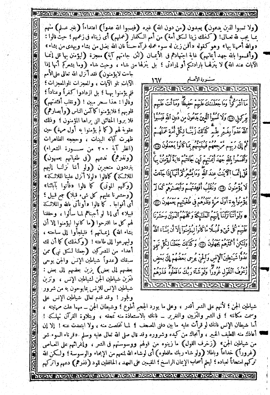 {وَكَذلِكَ} كما أن لك أعداء من المشركين {جَعَلْنَا لِكُلِّ نِبِيٍّ} ممن سبقك {عَدُوّاً شَيَاطِينَ الإِنْسِ وَالْجِنِّ يُوحِي بَعْضُهُمْ إِلَى بَعْضٍ} يزين بعضهم إلى بعض: فتزين شياطين الجن لشياطين الإنس، وتزين شياطين الإنس للإنس بما يوحون به من شرور وفجور وقد قدم تعالى شياطين الإنس على شياطين الجن؛ لأنهم على الشر أقدر؛ وعلى ما يورد الجحيم أطوع؛ وشيطان الجن - مهما علت مرتبته؛ وسمت مكانته؛ في الشر والتزيين والتغرير - فإنك بالاستعاذة منه تمحقه، وبتلاوة القرآن تهلكه أما شيطان الإنس فإنك لو قرأت عليه ما بين دفتي المصحف؛ لما تخلصت منه، ولا ابتعدت عنه إلا إن أعاذك منه اللطيف الخبير، وأنجاك من كيده وشروره وقد قال: «قرناء السوء شر من شياطين الجن» {زُخْرُفَ الْقَوْلِ} ما زينوه من قولهم ووسوستهم في الشر، وإغرائهم على المعاصي {غُرُوراً} خداعاً وباطلاً {وَلَوْ شَآءَ رَبُّكَ مَا فَعَلُوهُ} أي لو شاء الله لمنعهم من الإيحاء والوسوسة؛ ولكن الله تركهم امتحاناً لعباده؛ ليعلم أصحاب الإيمان الراسخ؛ المقيمين على العهد، الحافظين للود {فَذَرْهُمْ} دعهم واتركهم
