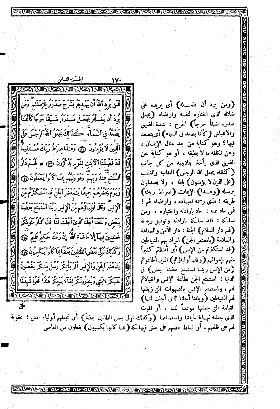 أي يزيده على ضلاله الذي اختاره لنفسه وارتضاه {يَجْعَلْ صَدْرَهُ ضَيِّقاً حَرَجاً} الحرج: شدة الضيق والانقباض {كَأَنَّمَا يَصَّعَّدُ فِي السَّمَآءِ} أي يتصعد فيها؛ وهو كناية عن بعد منال الإيمان، وعن تكلفه ما لا يطيقه، أو هو كناية عن الضيق الذي يأخذ بتلابيبه من كل جانب {كَذلِكَ يَجْعَلُ اللَّهُ الرِّجْسَ} العقاب والغضب {عَلَى الَّذِينَ لاَ يُؤْمِنُونَ} بالله، ولا يصدقون برسله