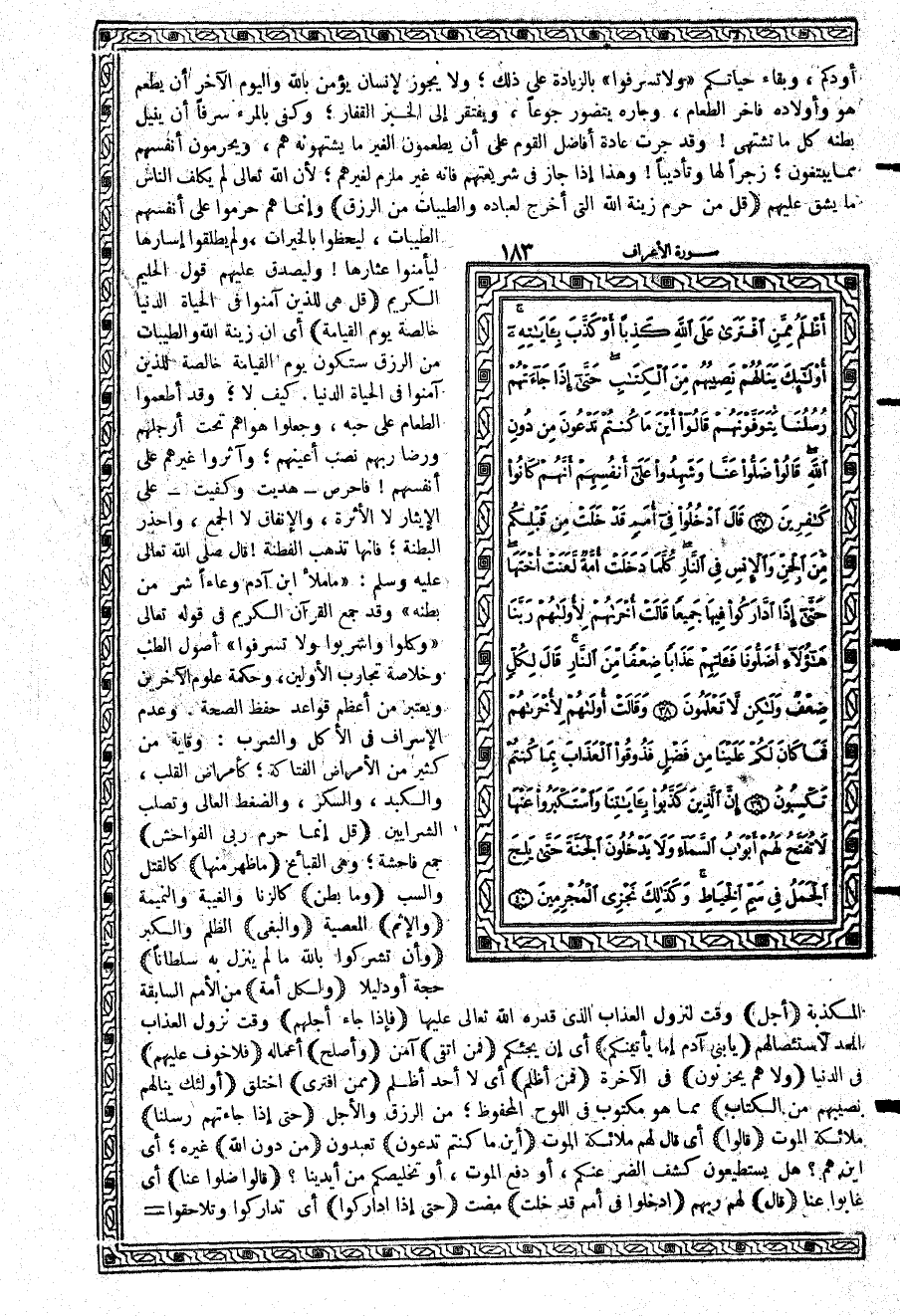 {قُلْ مَنْ حَرَّمَ زِينَةَ اللَّهِ الَّتِي أَخْرَجَ لِعِبَادِهِ وَالْطَّيِّبَاتِ مِنَ الرِّزْقِ} وإنما هم حرموا على أنفسهم الطيبات، ليحظوا بالخيرات، ولم يطلقوا إسارها ليأمنوا عثارها وليصدق عليهم قول الحليم الكريم {قُلْ هِي لِلَّذِينَ آمَنُواْ فِي الْحَيَاةِ الدُّنْيَا خَالِصَةً يَوْمَ الْقِيَامَةِ} أي أن زينة الله والطيبات من الرزق ستكون يوم القيامة خالصة للذين آمنوا في الحياة الدنيا. كيف لا؛ وقد أطعموا الطعام على حبه، وجعلوا هواهم تحت أرجلهم ورضا ربهم نصب أعينهم؛ وآثروا غيرهم على أنفسهم فاحرص - هديت وكفيت - على الإيثار لا الأثرة، والإنفاق لا الجمع، واحذر البطنة؛ فإنها تذهب الفطنة قال: «ما ملأ ابن آدم وعاءً شر من بطنه» وقد جمع القرآن الكريم في قوله تعالى: