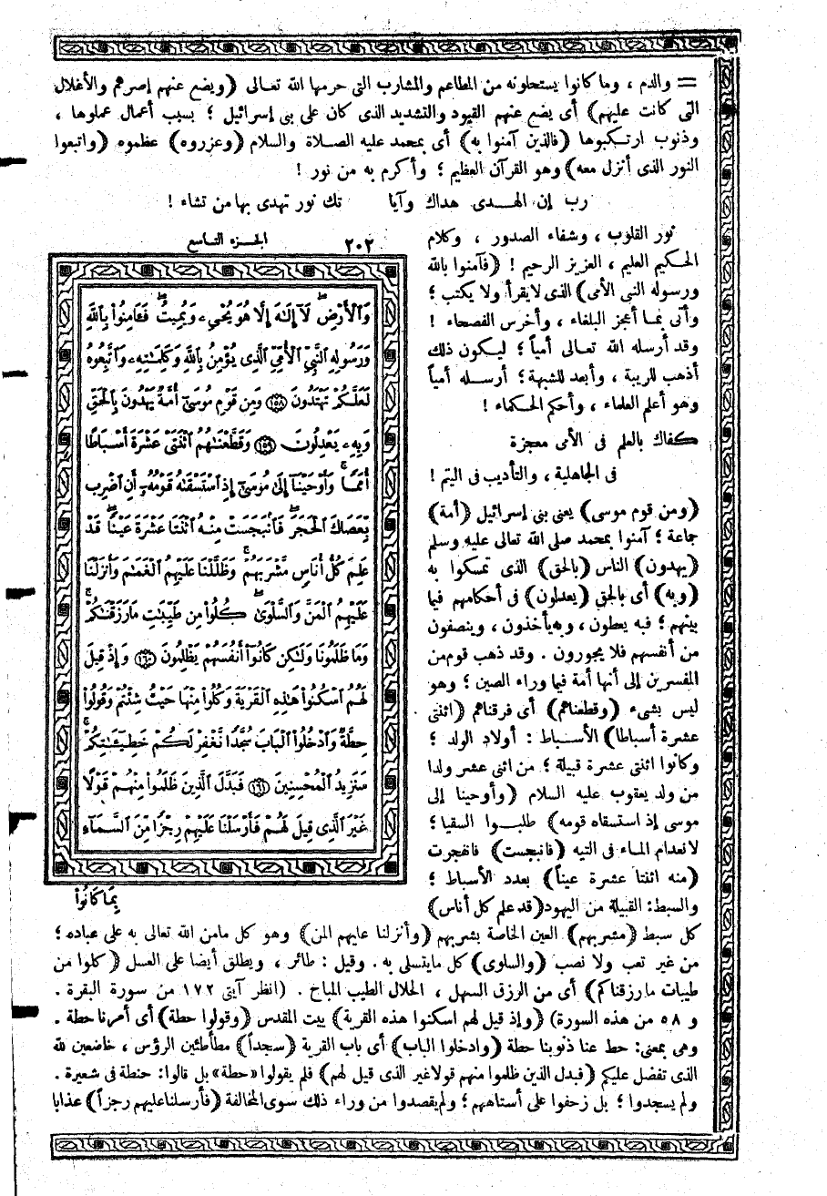 {وَمِن قَوْمِ مُوسَى} يعني بني إسرائيل {أُمَّةٍ} جماعة؛ آمنوا بمحمد {يَهْدُونَ} الناس {بِالْحَقِّ} الذي تمسكوا به {وَبِهِ} أي بالحق {يَعْدِلُونَ} في أحكامهم فيما بينهم؛ فبه يعطون، وبه يأخذون، وينصفون من أنفسهم فلا يجورون. وقد ذهب قوم من المفسرين إلى أنها أمة فيما وراء الصين؛ وهو ليس بشيء