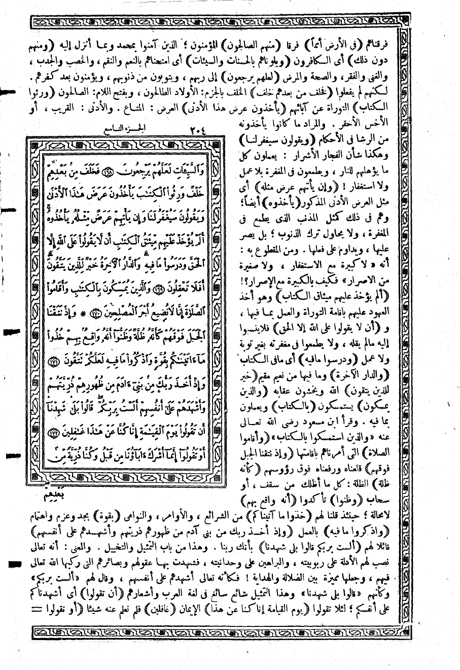 {فَخَلَفَ مِن بَعْدِهِمْ خَلْفٌ} الخلف بالجزم: الأولاد الطالحون، وبفتح اللام: الصالحون {وَرِثُواْ الْكِتَابَ} التوراة عن آبائهم {يَأْخُذُونَ عَرَضَ هَذَا الأَدْنَى} العرض: المتاع. والأدنى: القريب، أو الأخس الأحقر. والمراد ما كانوا يأخذونه من الرشا في الأحكام {وَيَقُولُونَ سَيُغْفَرُ لَنَا} وهكذا شأن الفجار الأشرار: يعملون كل ما يؤهلهم للنار، ويطمعون في المغفرة بلا عمل ولا استغفار {وَإِن يَأْتِهِمْ عَرَضٌ مِّثْلُهُ} أي مثل العرض الأدنى المذكور {يَأْخُذُوهُ} أيضاً؛ وهم في ذلك كمثل المذنب الذي يطمع في المغفرة، ولا يحاول ترك الذنوب؛ بل يصر عليها، ويداوم على فعلها. ومن المقطوع به: أنه «لا كبيرة مع الاستغفار، ولا صغيرة مع الإصرار» فكيف بالكبيرة مع الإصرار؟ {أَلَمْ يُؤْخَذْ عَلَيْهِمْ مِّيثَاقُ الْكِتَابِ} وهو أخذ العهود عليهم بإقامة التوراة والعمل بما فيها، و {أَن لاَّ يِقُولُواْ عَلَى اللَّهِ إِلاَّ الْحَقَّ} فلا ينسبوا إليه ما لم يقله، ولا يطمعوا في مغفرته بغير توبة ولا عمل {وَدَرَسُواْ مَا فِيهِ} أي ما في الكتاب {وَالدَّارُ الآخِرَةُ} وما فيها من نعيم مقيم {خَيْرٌ لِّلَّذِينَ يَتَّقُونَ} الله ويخشون عقابه