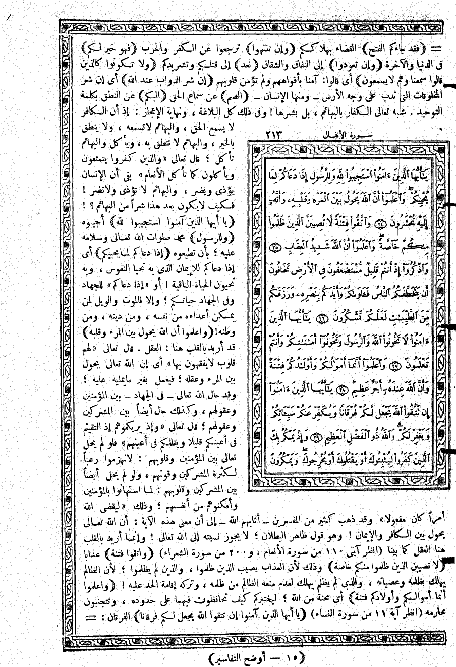 {يأَيُّهَا الَّذِينَ آمَنُواْ اسْتَجِيبُواْ للَّهِ} أجيبوه {وَلِلرَّسُولِ} محمد صلوات الله تعالى وسلامه عليه؛ بأن تطيعوه {إِذَا دَعَاكُم لِمَا يُحْيِيكُمْ وَاعْلَمُواْ أَنَّ اللَّهَ يَحُولُ بَيْنَ الْمَرْءِ وَقَلْبِهِ} أي إذا دعاكم للإيمان الذي به تحيا النفوس، وبه تحيون الحياة الباقية أو {إِذَا دَعَاكُم} للجهاد وفي الجهاد حياتكم؛ وإلا فالموت والويل لمن يمكن أعداءه من نفسه، ومن دينه، ومن وطنه {وَاعْلَمُواْ أَنَّ اللَّهَ يَحُولُ بَيْنَ الْمَرْءِ وَقَلْبِهِ} قد أريد بالقلب هنا: العقل. قال تعالى: {لَهُمْ قُلُوبٌ لاَّ يَفْقَهُونَ بِهَا} أي إن الله تعالى يحول بين المرء وعقله؛ فيعمل بغير ما يمليه عليه؛ وقد حال الله تعالى - في الجهاد - بين المؤمنين وعقولهم؛ وكذلك حال أيضاً بين المشركين وعقولهم؛ قال تعالى: {وَإِذْ يُرِيكُمُوهُمْ إِذِ الْتَقَيْتُمْ فِي أَعْيُنِكُمْ قَلِيلاً وَيُقَلِّلُكُمْ فِي أَعْيُنِهِمْ} فلو لم يحل تعالى بين المؤمنين وقلوبهم: لانهزموا رعباً لكثرة المشركين وقوتهم، ولو لم يحل أيضاً بين المشركين وقلوبهم: لما استهانوا بالمؤمنين وأمكنوهم من أنفسهم؛ وذلك {لِّيَقْضِيَ اللَّهُ أَمْراً كَانَ مَفْعُولاً} وقد ذهب كثير من المفسرين - أثابهم الله - إلى أن معنى هذه الآية: أن الله تعالى يحول بين الكافر والإيمان وهو قول ظاهر البطلان؛ لا يجوز نسبته إلى الله تعالى وإنما أريد بالقلب هنا العقل كما بينا (انظر آيتي 110 من سورة الأنعام، و200 من سورة الشعراء)