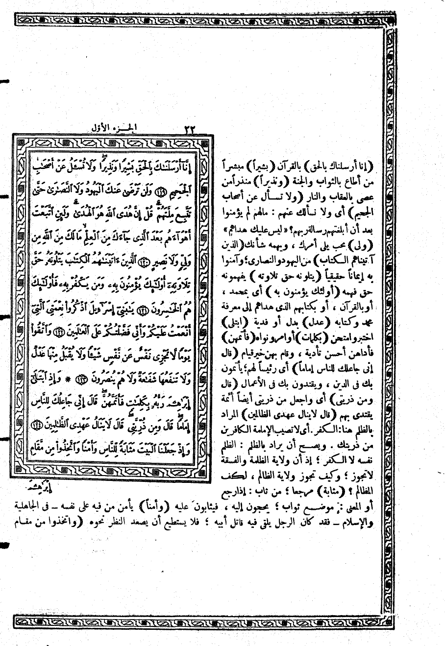 {إِنَّا أَرْسَلْنَاكَ بِالْحَقِّ} بالقرآن {بَشِيراً} مبشراً من أطاع بالثواب والجنة {وَنَذِيراً} منذراً من عصى بالعقاب والنار {وَلاَ تُسْأَلُ عَنْ أَصْحَابِ الْجَحِيمِ} أي ولا نسألك عنهم: ما لهم لم يؤمنوا بعد أن أبلغتهم رسالة ربهم؟ {لَّيْسَ عَلَيْكَ هُدَاهُمْ} {وَلِيُّ} محب يلي أمرك، ويهمه شأنك