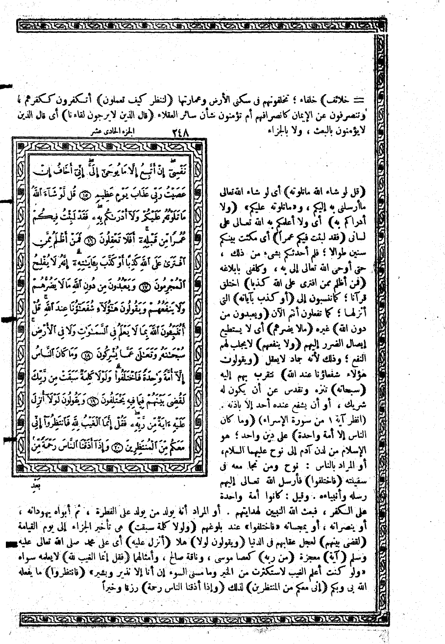 {وَمَا كَانَ النَّاسُ إِلاَّ أُمَّةً وَاحِدَةً} على دين واحد؛ هو الإسلام من لدن آدم إلى نوح عليهما السلام، أو المراد بالناس: نوح ومن نجا معه في سفينته {فَاخْتَلَفُواْ} فأرسل الله تعالى إليهم رسله وأنبياءه. وقيل: كانوا أمة واحدة على الكفر، فبعث الله النبيين لهدايتهم. أو المراد أنه يولد من يولد على الفطرة، ثم أبواه يهودانه، أو ينصرانه، أو يمجسانه «فاختلفوا» عند بلوغهم {وَلَوْلاَ كَلِمَةٌ سَبَقَتْ} هي تأخير الجزاء إلى يوم القيامة {لَقُضِيَ بَيْنَهُمْ} لعجل عقابهم في الدنيا
